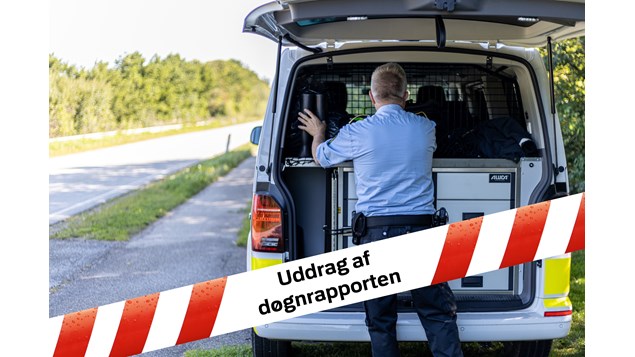 Kl.12.28 anmeldte ejeren af en landejendom på Egøje Byvej, at hun på et overvågningskamera kunne se, at en mand og en kvinde var gået ind i en lade på stedet, hvor der blev opbevaret var loppemarkedsting. Kvinden var iført handsker og de gik begge og rodede i tingene i laden. Flere hundepatruljer kørte frem til stedet, hvor de så en parkeret varebil holde tæt ved ejendommen.