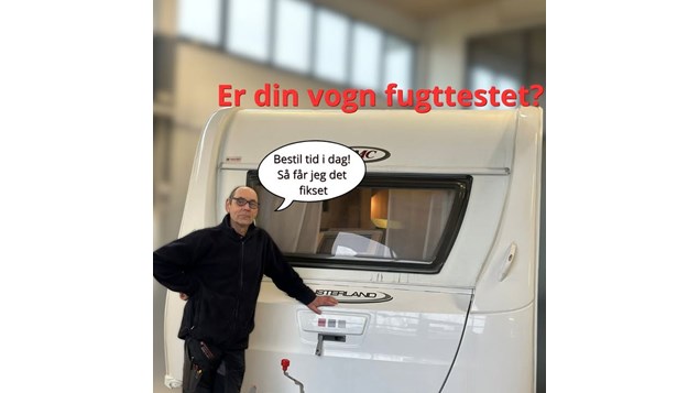 Slagelse Camping og Outdoor Center opfordrer campingvognsejere til at få foretaget en fugttest for at undgå dyre skader. De tilbyder booking af tid til test før campingsæsonen starter.